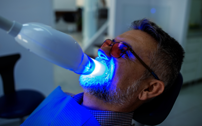 This procedure uses a highly concentrated whitening gel activated by an LED light to remove deep stains and discoloration from the enamel. Patients can achieve a brighter smile by up to 6–8 shades in a single 60-minute session.